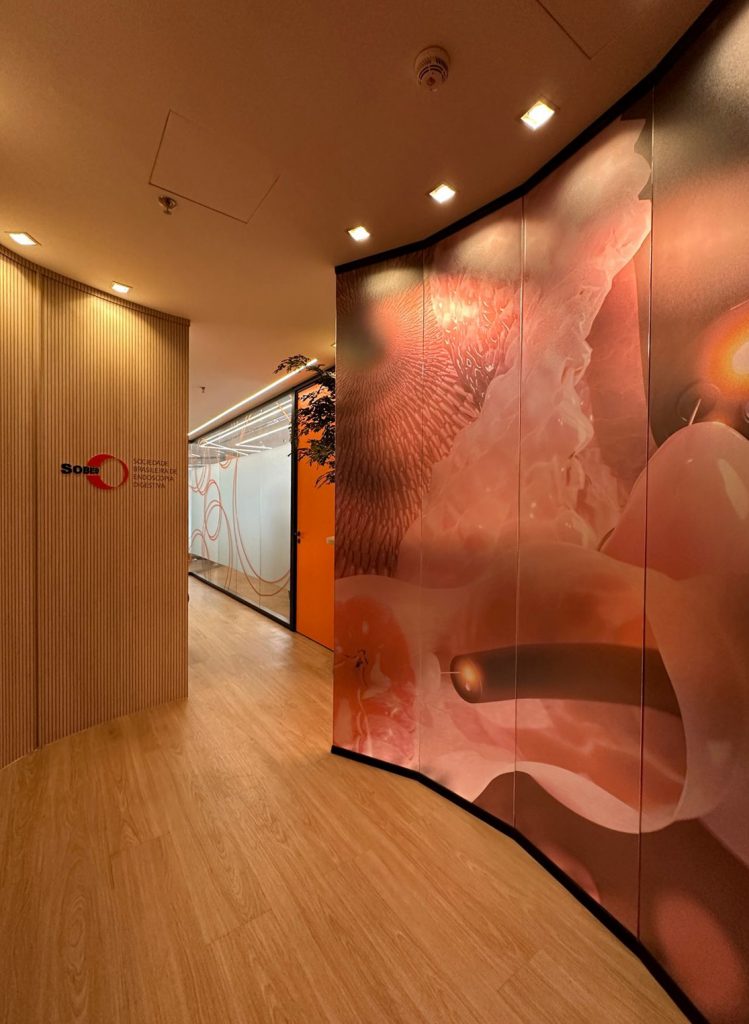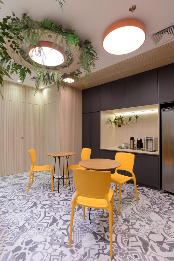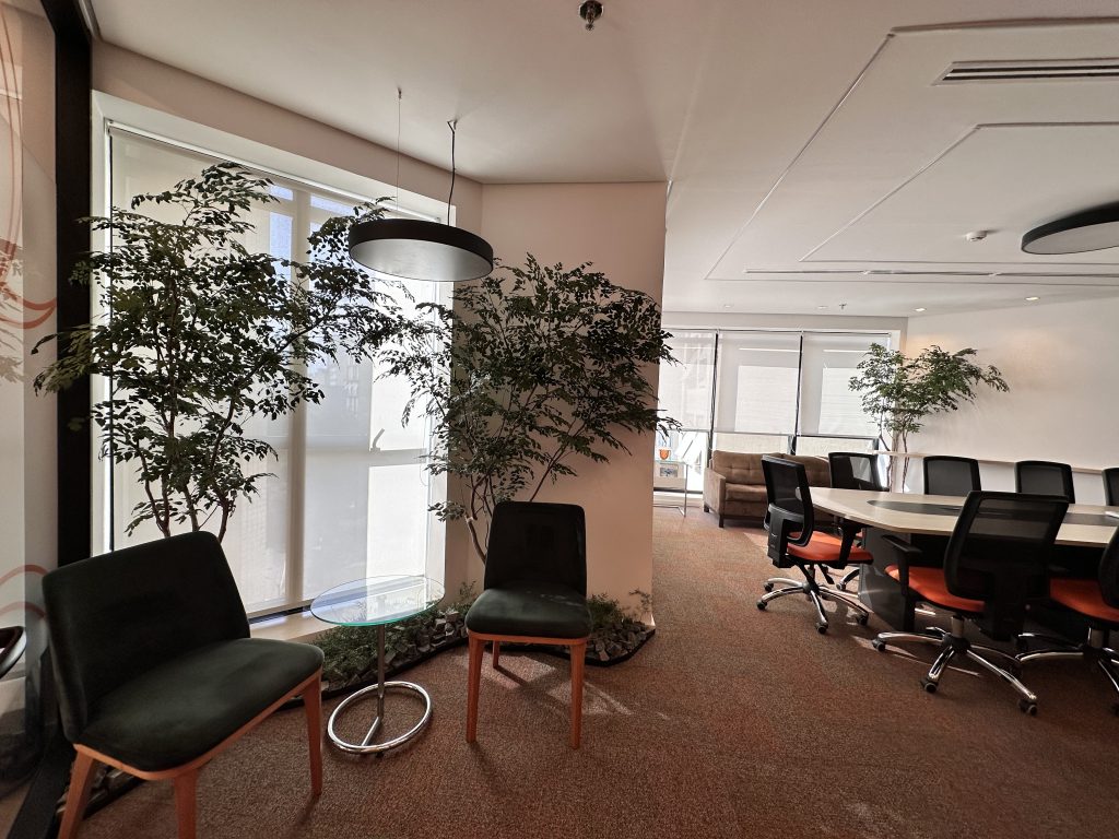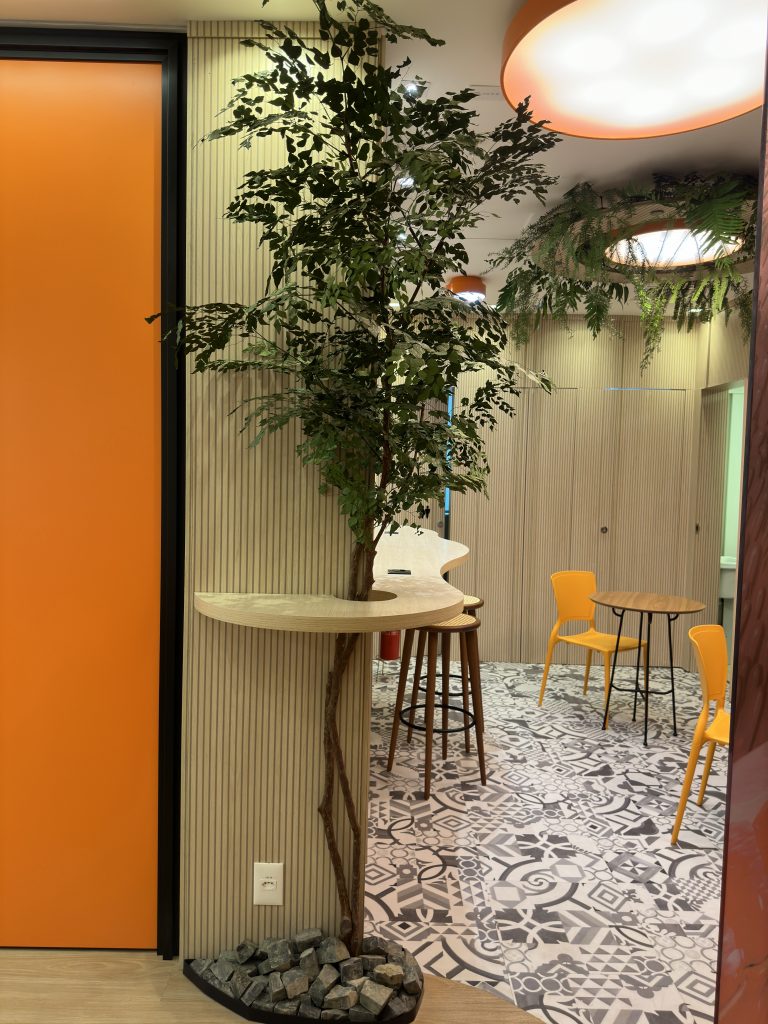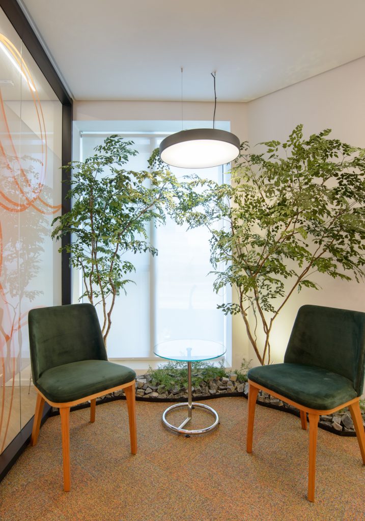2022 – 500m²Espaços abertos, amplos e com uso de biofilia estrategicamente pensada, para manter sempre um clima agradável e gentil ao ambiente. Na área dos colaboradores foram criados armarios piso teto como divisorias para dividir os ambientes e aproveitando espaço para armazenamento.
