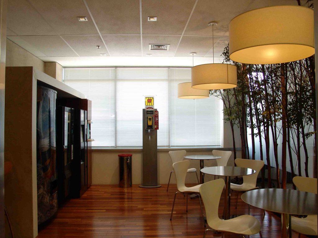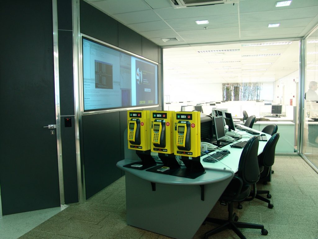 2007 – 1300m²O objetivo era “criar” uma instalação atual, capaz de traduzir a marca da empresa, pautada na tecnologia, mas com consciência social e ambiental. Por isso, o uso de materiais e técnicas ambientalmente corretos. Os espaços foram divididos em: área de recepção ligada a um café e complexo de salas de reuniões, com uma área em especial para a diretoria, com capacidade para 20 lugares, próxima à sala da presidência. Para a área do staff foi pensado um café para atendimento dos colaboradores, além de salas de reunião internas. O andar ainda abriga uma área de Tecnologia, com sala de monitoramento bastante sofisticada, com vídeo wall e mobiliário especial e totalmente envidraçada. Foram usados carpete de cor clara e uma trama interessante, aço e vidro nas divisórias e portas altas com acabamento em laminado melamínico na cor chumbo.